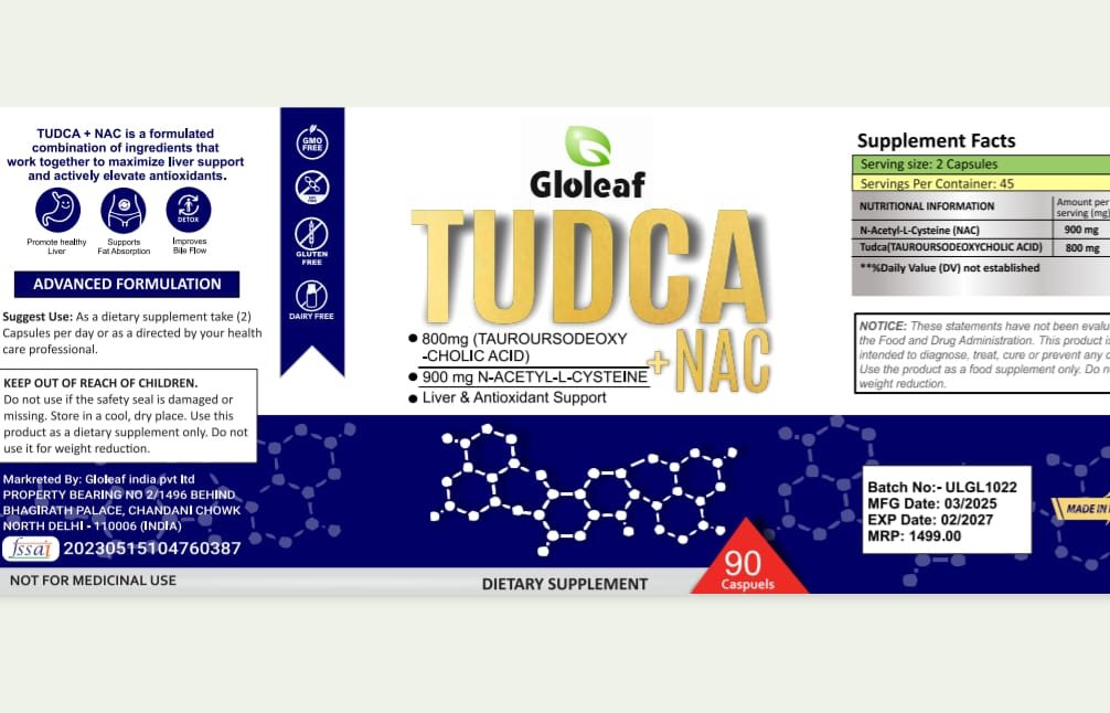 TUDCA 800mg +NAC 900mg | 牛磺熊去氧胆酸+N-乙酰半胱氨酸– 90 Capsules  by Gloleaf